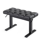Black painted metal bench with one quilted seat. Adjustable height by gas mechanism.