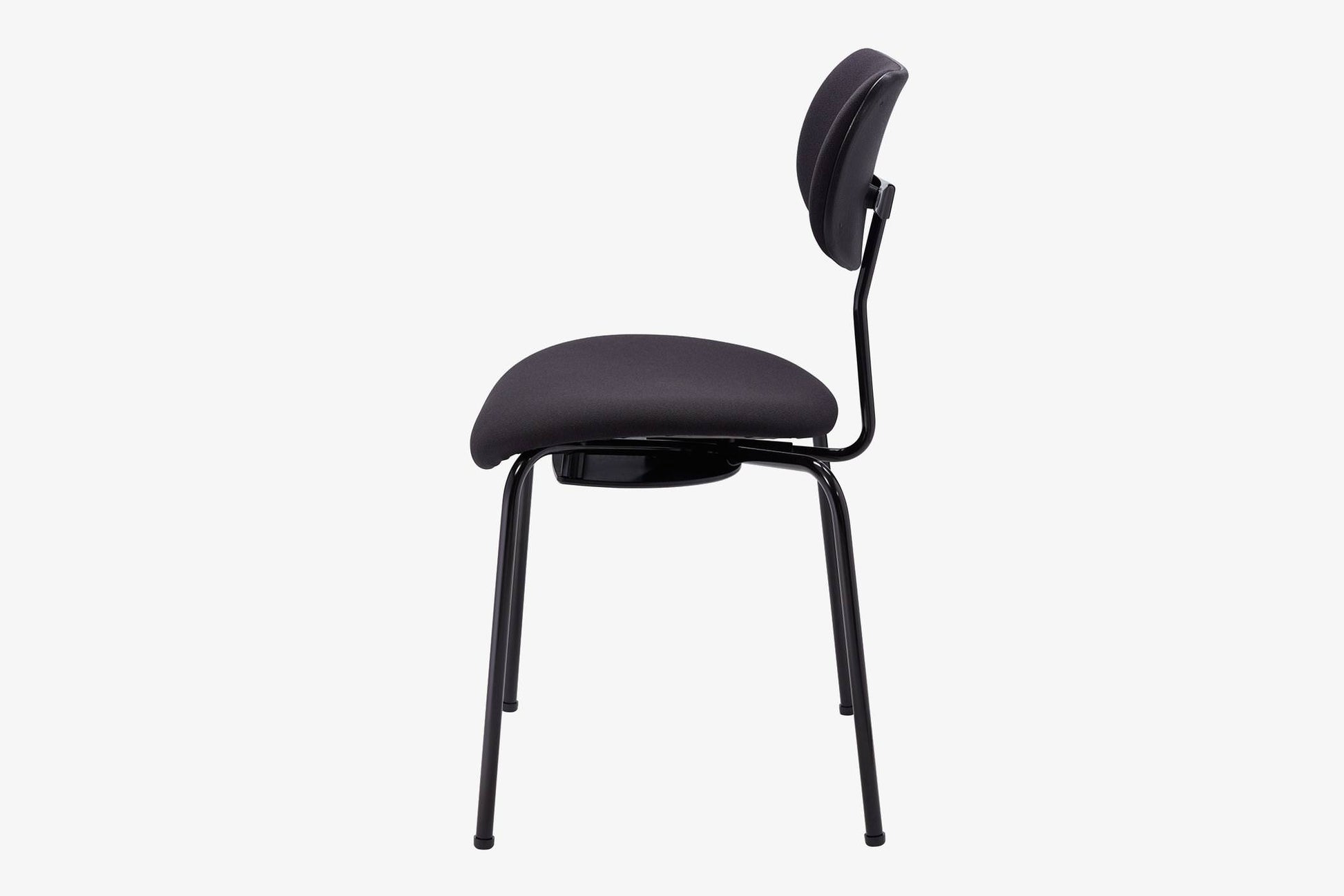 Stackable with stacking rubber pad under the seat; in upholstered version with stacking board under the seat 4-legged frame, max. of 8 chairs stackable, tubular steel, Diameter 18 × 2 mm, black powder-coated.